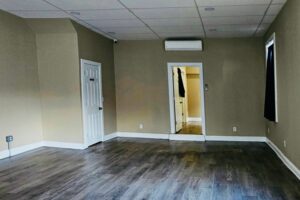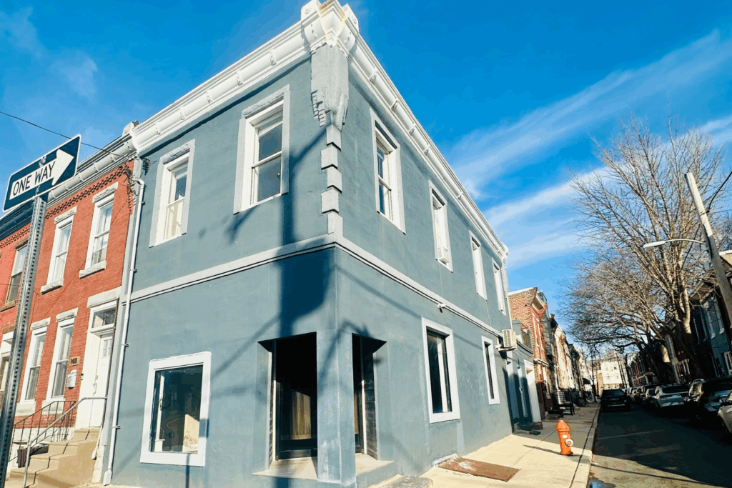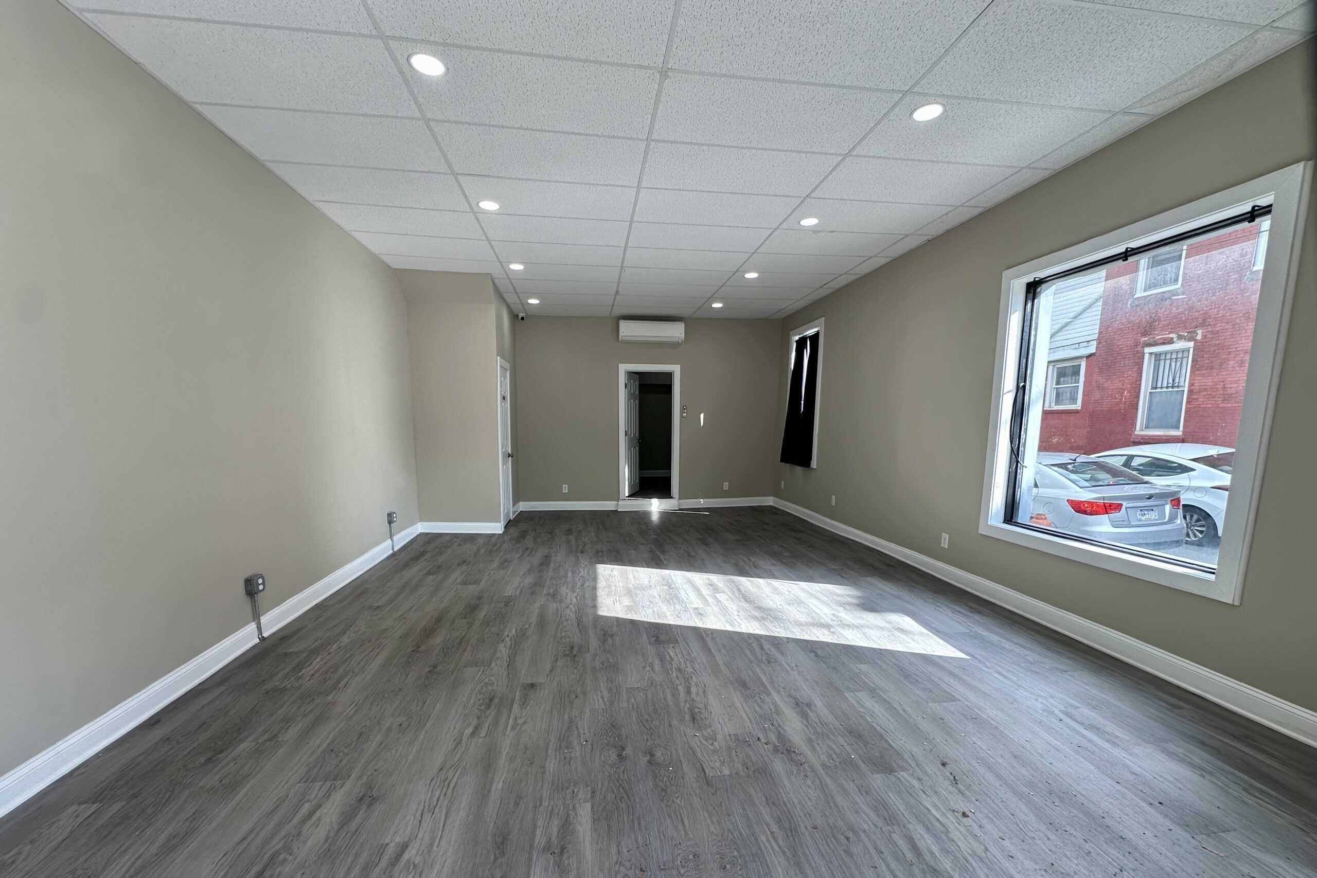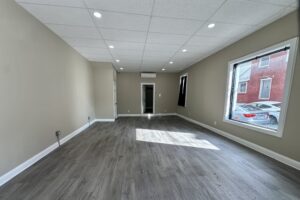 A versatile CMX-2 zoned corner commercial unit is available for rent near Wharton Square Park in the Point Breeze neighborhood. This open commercial space offers flexibility for a variety of business types and includes a powder room and a private office area, making it suitable for many potential uses.