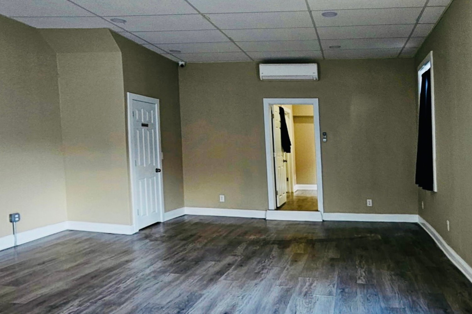 Floor plan: Open commercial space with powder room and private office