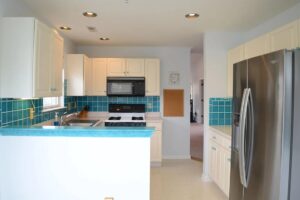The kitchen and breakfast area featured abundant windows and an open overlook to the entry, bringing in natural light throughout the day. Kitchen highlights included gas cooking, dishwasher, garbage disposal, ample cabinetry, and a ceramic tile backsplash.