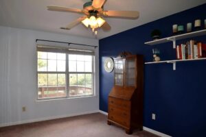 The floor plan offered strong separation of space, with a second bedroom tucked away from the main living areas and featuring a double closet. A dedicated laundry/utility room included storage shelving, along with major mechanical upgrades such as a 2021 Trane HVAC system and a 2021 hot water heater. Additional storage included a hallway coat/storage closet and a hall linen closet.