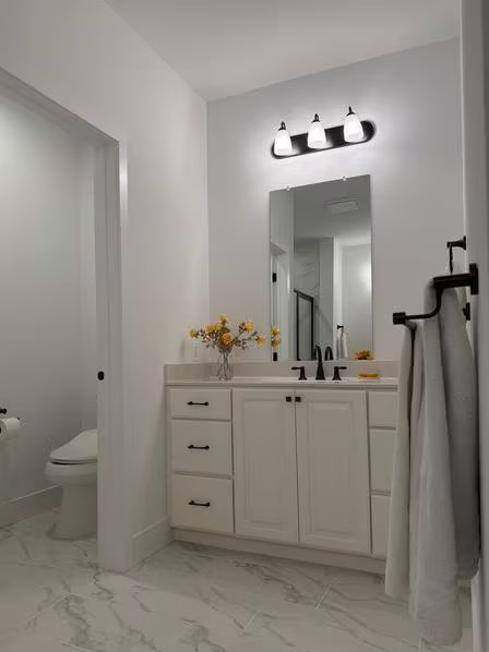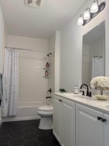 Upstairs are three bedrooms, including a spacious owner’s suite with a walk-in closet and spa-like bath, plus a hallway bath for the additional bedrooms. The community belongs to the top-ranked West Windsor-Plainsboro School District and offers a weekday shuttle to Princeton Junction Station.